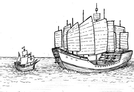 Ook de Chinese vloot was indrukwekkend en onderhield belangrijke handelsroutes langs de gehele Aziatische kust tot in de Rode Zee (zijderoute over zee). De kosten waren echter aanzienlijk en de opbrengsten onvoldoende interessant om financieel te kunnen worden onderhouden door het keizerrijk, dat zich op het vaste land voortdurend moest verdedigen tegen nomadische invallen en het consolideren van de centrale macht. Daarom bleven nieuwe investeringen uit en werd het onderhoud van de vloot verwaarloost zodat er tegen de tijd dat de Europeanen in de Indische Oceaan verschenen er van de Chinese vloot weinig meer over was (en van de zachtaardige Arabieren viel niets te duchten).