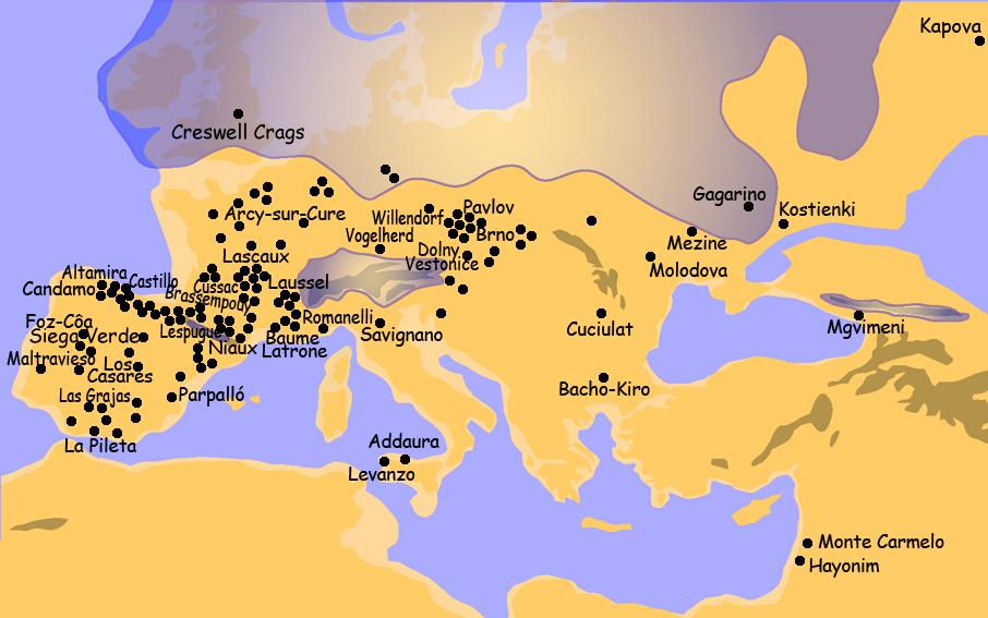 Meer dan 40 000 jaar geleden - lang voordat de laatste ijstijd ten einde was - zwierven er al groepen mensachtigen door Eurazië (en verder weg). Deze jager/verzamelaars leidden soms een sedentair bestaan: ze bewoonden grotten waar ze rotsschilderingen en gereedschappen maakten. Vondsten bevestigen dat ruimschoots voor het begin van de eerste eenvoudige uitingen van domesticatie in Mesopotamië het Europese continent al bewoond werd door hominiden die als voorlopers van de moderne mens beschouwd kunnen worden.* Het is goed denkbaar dat de Vruchtbare Sikkel niet alleen gekoloniseerd werd vanuit Afrika maar dat deze toen nog bosrijke omgeving ook mensachtigen uit het met ijs bedekte Eurazië aantrok.